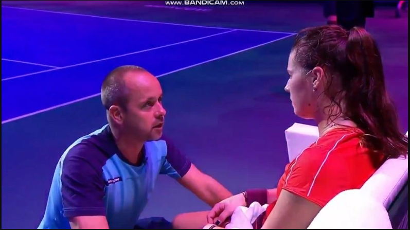 Le coach Philippe Dehaes et son athlète Daria Kasatkina - Moscou 2018